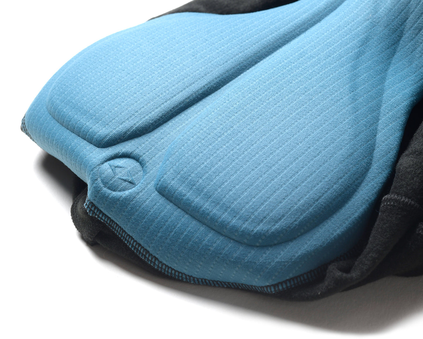 Lower leg panels in Superspeed®. Fine ribbed microstructure trips airflow across the fastest-moving part of the leg, saving 4–6 W at 45 km/h versus smooth thermal fabrics of equivalent warmth. Considerate panel construction remove bunching or pulling at the knee, allowing deep knee flexion without discomfort.