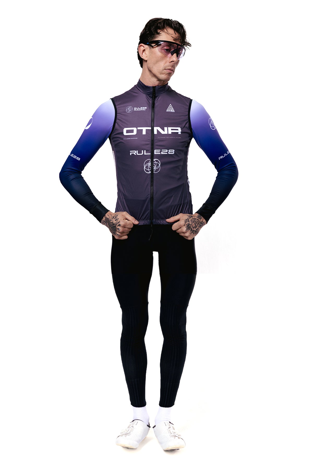 The lightweight gilet blocks the chill on long descents and headwind stretches.