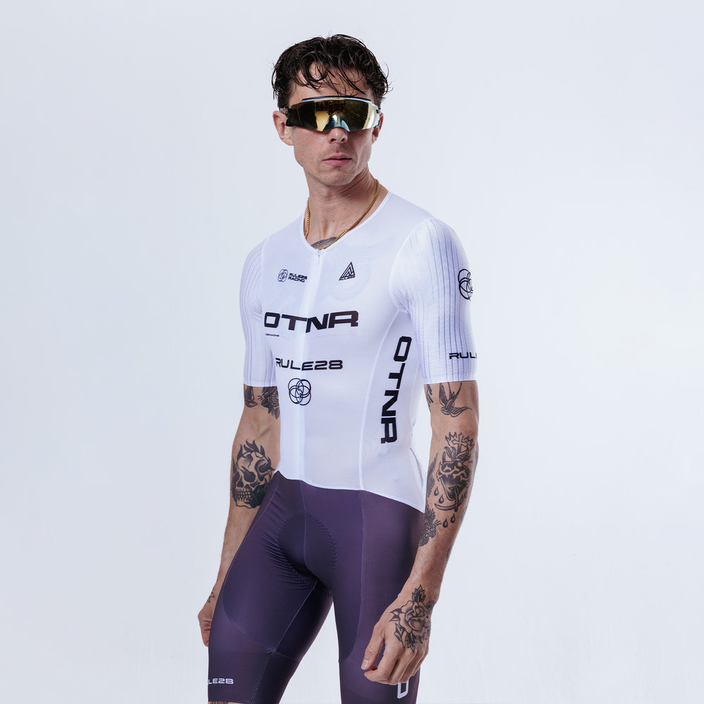 Featuring a more lightweight aero arm fabric than our previous iteration, this suit is designed for high-summer, hot temperature riding.